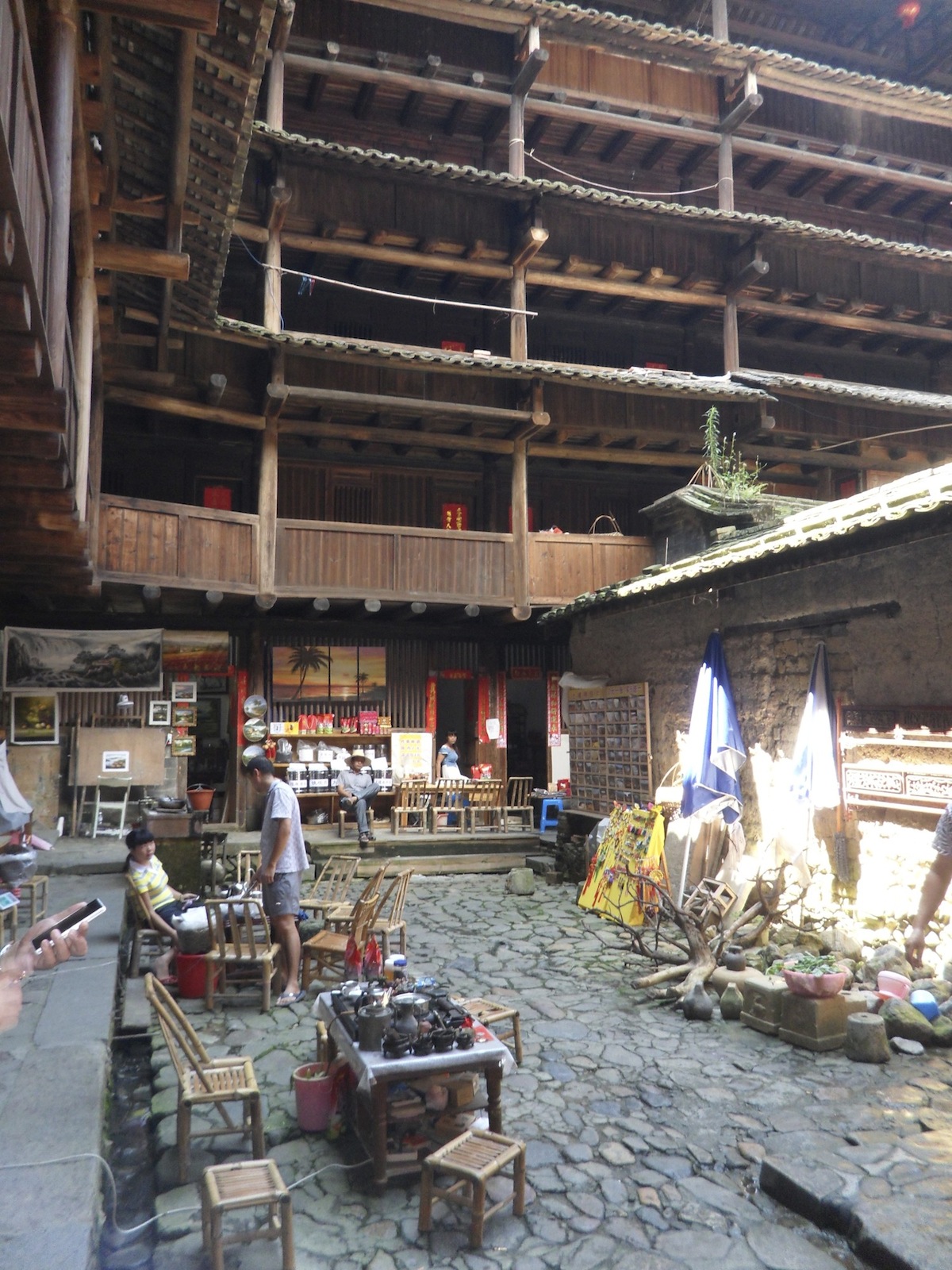こちらは、700年前の土楼内部。外から見たら、少し傾きかかっていました。柱が斜めになっているのは、強度を綿密に計算した結果と聞きましたが・・・?